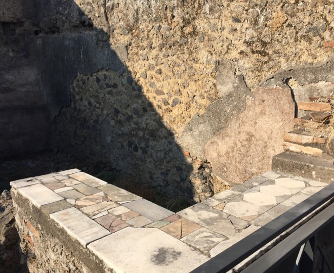 Usually surrounding the atrium were the family’s main rooms; the bedrooms (cubicula), the dining room (triclinium), a study (tablinum), and the kitchen (culina). Houses might also have internal courtyard gardens and in Pompeii they often have at least one upper floor.