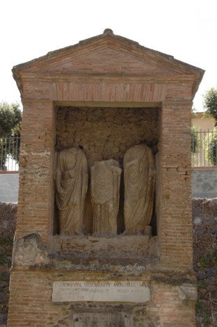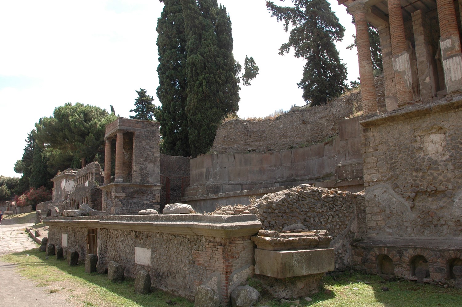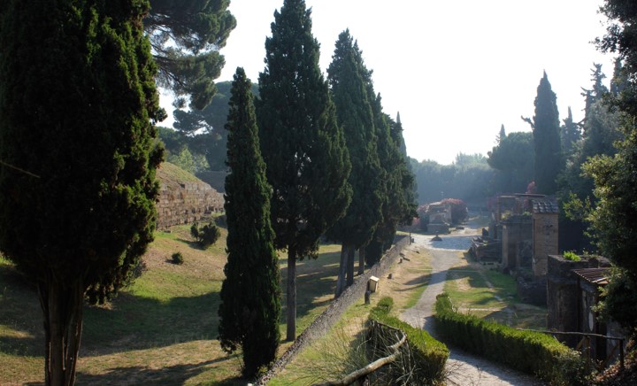 There are eight necropolises outside the walls of Pompeii. Necropolis means 'city of the dead' and is the word used to describe Roman cemetries. These were different to modern cemetries however, as they were not 'consecrated' (the modern term meaning that ground has been made sacred) or associated with a religious building. The largest ones even had shops and houses in amongst the tombs!