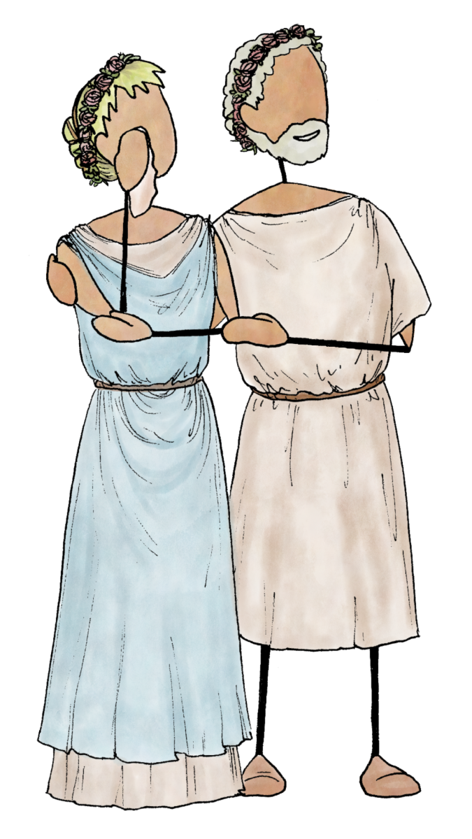 Axiochus and his wife Julia Helena share a couch made of cushions. Axiochus catches Amarantus’s eye and gives him a single nod of approval. Julia Helena notices this and smiles.