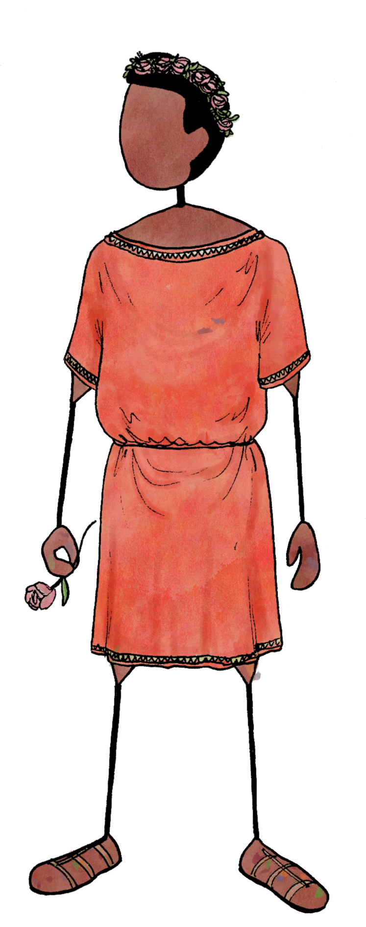 Everyone wears garlands of red and pink roses from Paestum, including Pertinax the dog and Potiscus the mule. The air is heady with their scent. They recline on mats and cushions, as at Amarantus’s birthday. Again, there is no place of honour and only one grade of food. Everyone drinks the finest wine from Crete, Lesbos and Gaza watered to their taste. The courses are brought in on trays carried by the twin slaves Biria and Birius, dressed in pink tunics that match the pink buds in their garlands.